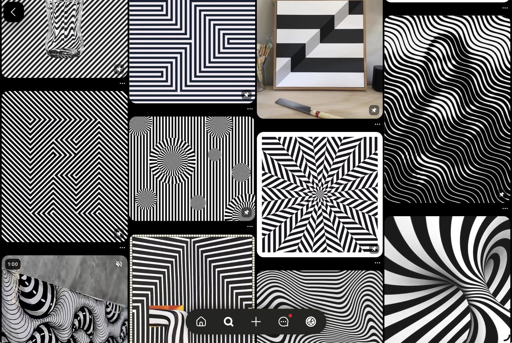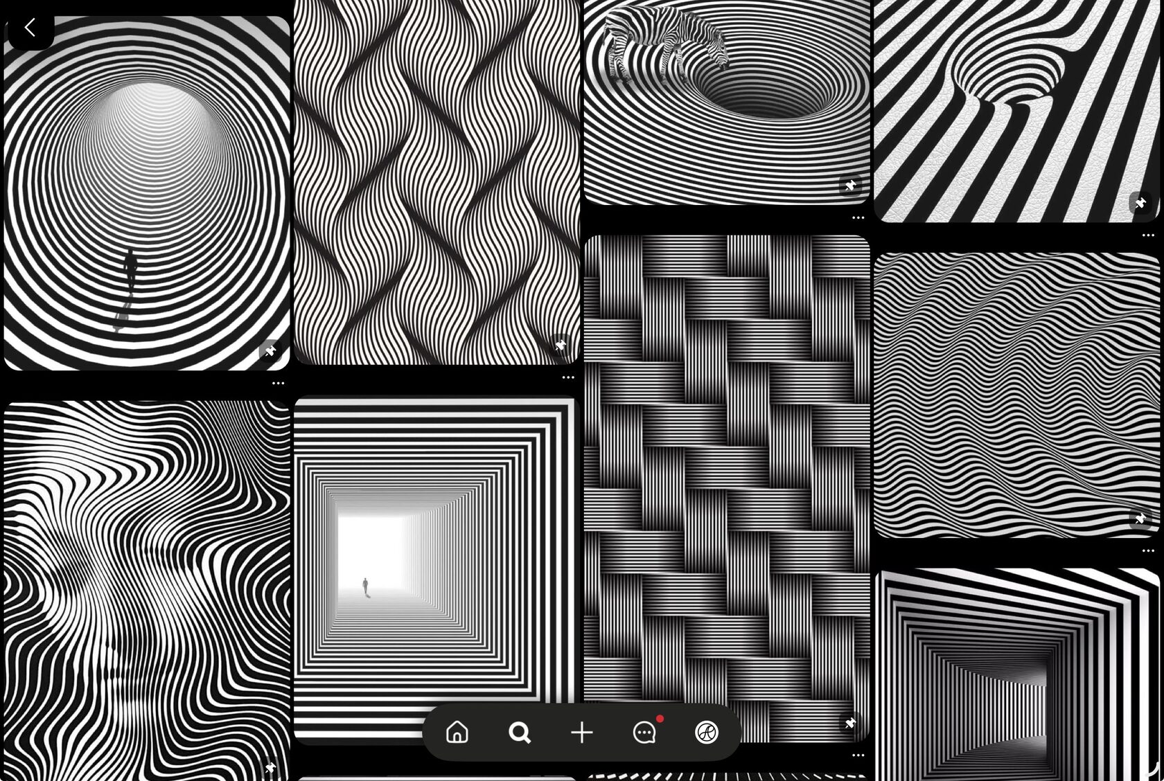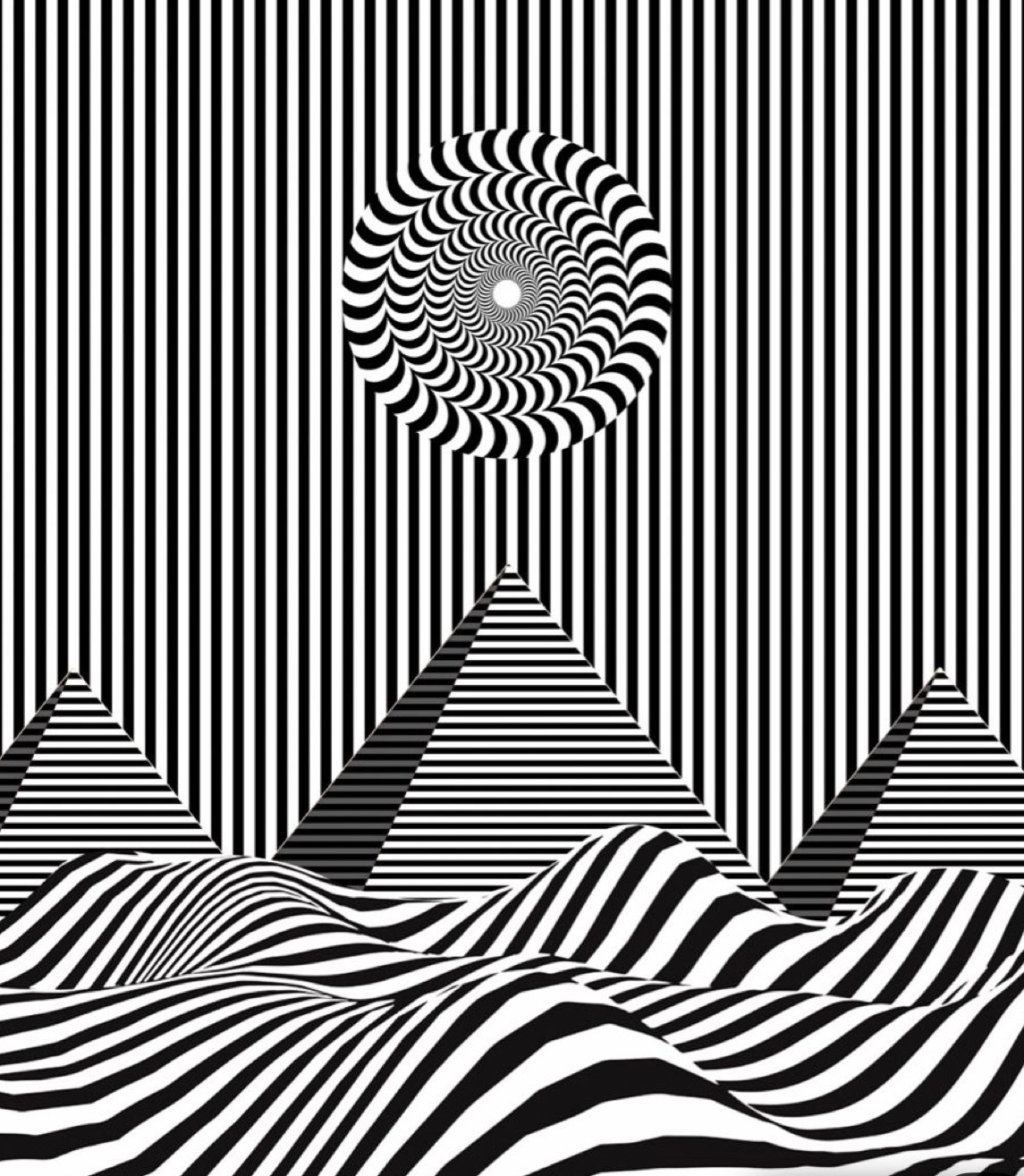 повторяющиеся линии, формы, спирали, которые создают иллюзию движения.
